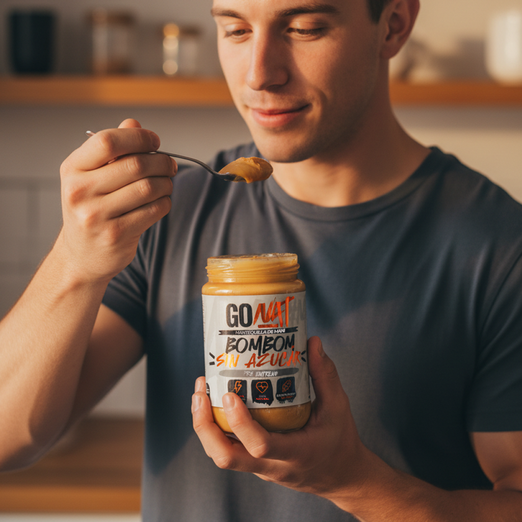 ¿Buscas un combustible pre entreno rico y libre de azúcares? BOMBOM es la solución cremosa y energética que tu cuerpo necesita. Elaborada con una mezcla premium de maní tostado sin sal CRUNCHY y chocolate blanco endulzado con isomaltosa (un carbohidrato de bajo índice glucémico), esta mantequilla ofrece una combinación perfecta de calorías de calidad, grasas saludables y carbohidratos de absorción lenta. Ideal para deportistas, amantes del fitness o cualquiera que busque un snack rico pero sin culpa.